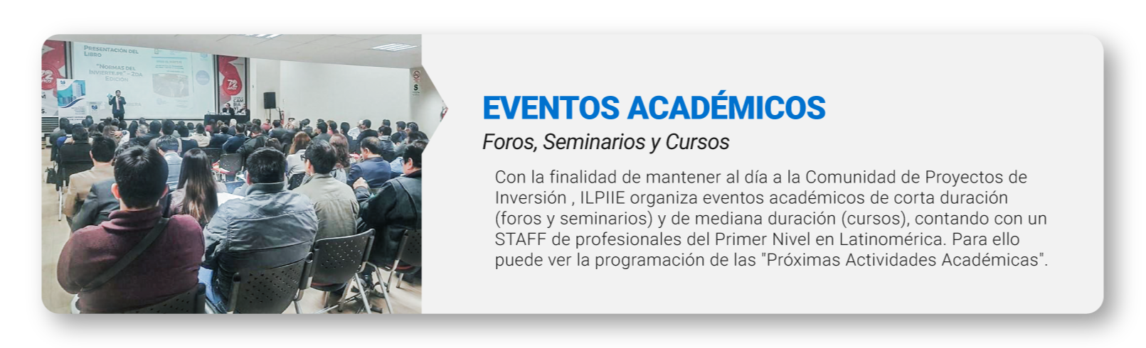 Programas de alta especialización en Proyectos de Inversión, Ingeniería y Economía, alineados a la normativa vigente y a las reales demandas del sector público y privado.